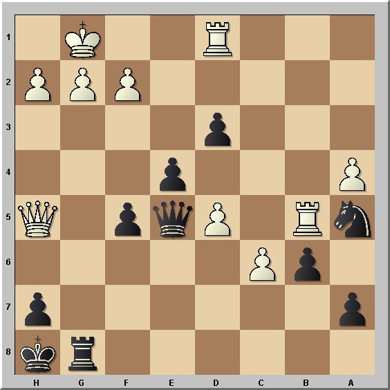 cxd4 28. c5 Tc8 29. c6 De5 30. Dd2 d3 31. Dg5+ Rh8 32. Tb5 Tg8,
